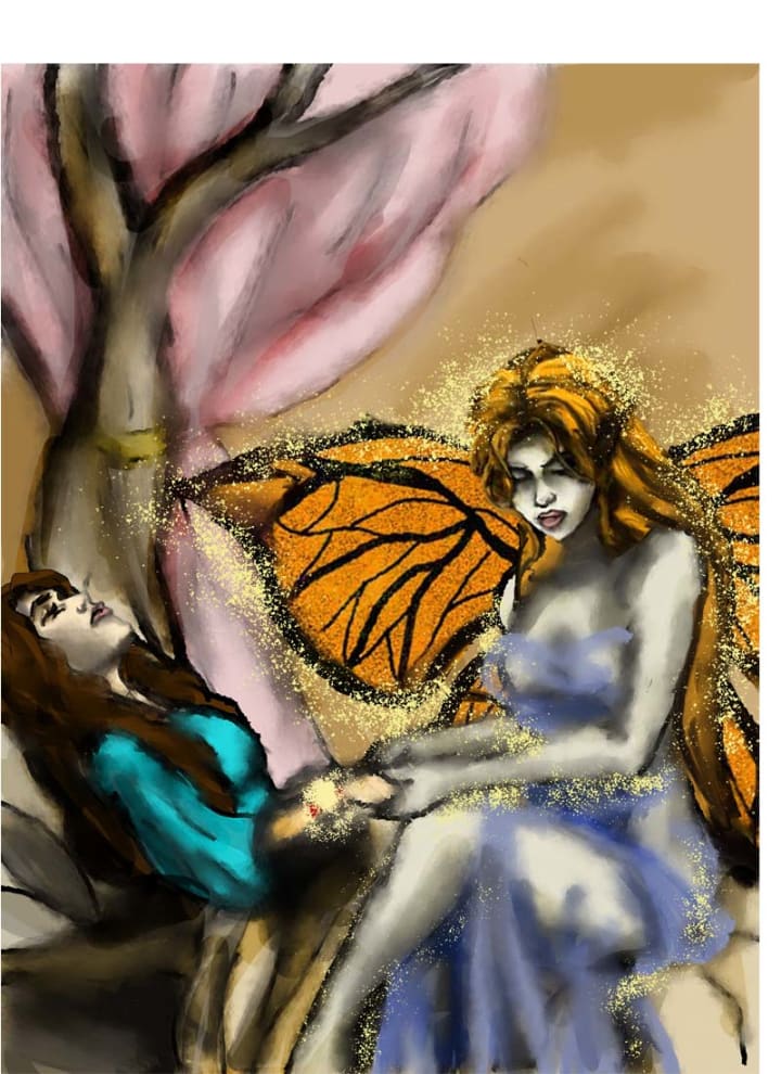 “Someone like you, is exactly who I want to see.” Klara turned in shock to see the most beautiful woman with flowing golden hair and bright orange wings. She smiled brightly, her round face lighting up and her emerald green eyes sparkling with amusement. She giggled like a young girl and added, “It’s wonderful to finally meet you, Klara.”