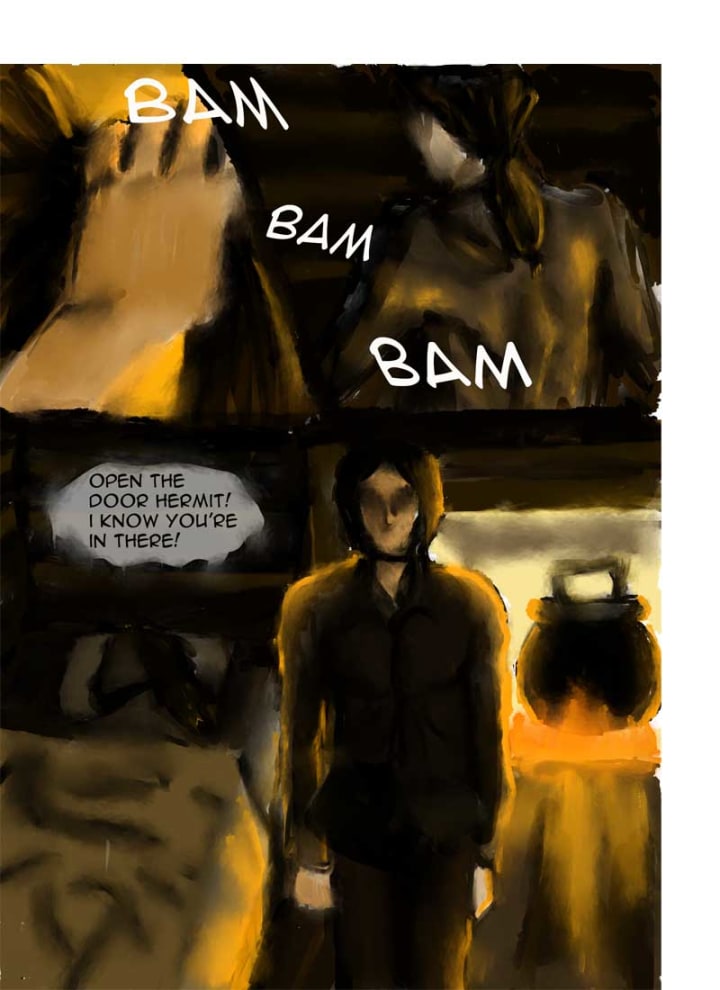 “Open the door hermit!” The voice grated his ears. He knew perfectly well who it was without even needing to hear that awful sound. “I know you’re in there!” Knowing they wouldn’t go away until he answered, Randolf quickly dressed and pulled his hair back with twine. He cracked open the door, making sure that no one could look inside, and sneered,