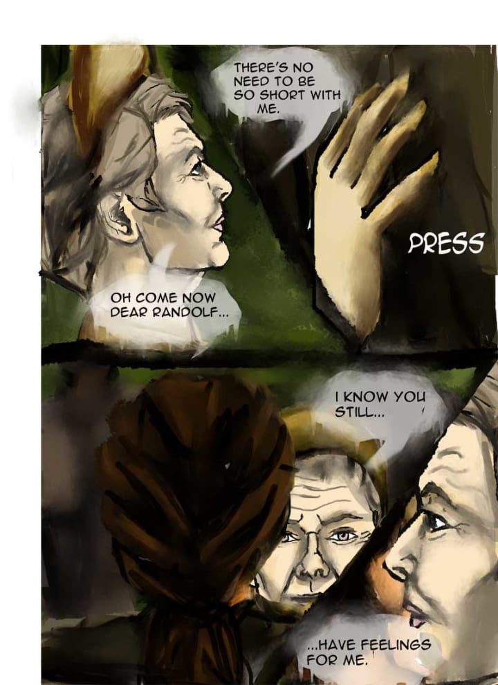 “I’m looking for my niece.” Though she kept a polite demeanor, knowing her true personality allowed Randolf to see through the facade. Adding in the two hulking body guards behind her also ruined any chance of her looking innocent. Randolph’s blood boiled, imagining these brutes hauling poor Klara back to the Hell she’d escaped. Were they the ones responsible for her injuries?
