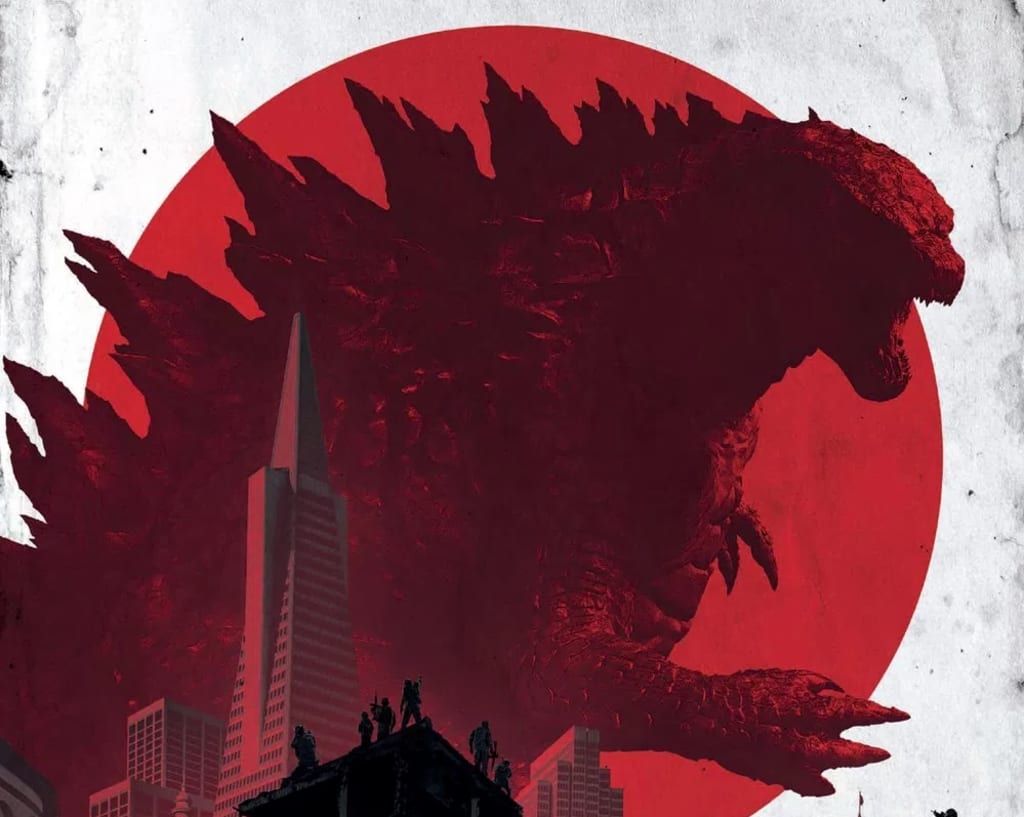 After its heart-pounding first trailer, we were treated with this phenomenal IMAX poster for the return of #Godzilla. It had been 16 years since Hollywood tackled Godzilla and because the 1998 version featured an overabundance of Matthew Broderick's quips, audiences were clamoring for a more serious take on the mega monster. This poster illustrates the sheer monstrous size of Godzilla compared to the military personnel below and the tallest skyscraper in the San Francisco skyline, the Transamerica Pyramid.