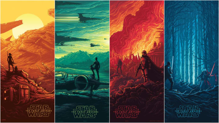 During the lead-up to the ridiculously anticipated return to a galaxy far, far, away, IMAX released four beautifully illustrated posters in 2015. The posters showcased Rey (#DaisyRidley), Poe (#OscarIsaac), Captain Phasma (#GwendolineChristie) and the showdown between Finn (#JohnBoyega) and Kylo Ren (#AdamDriver).