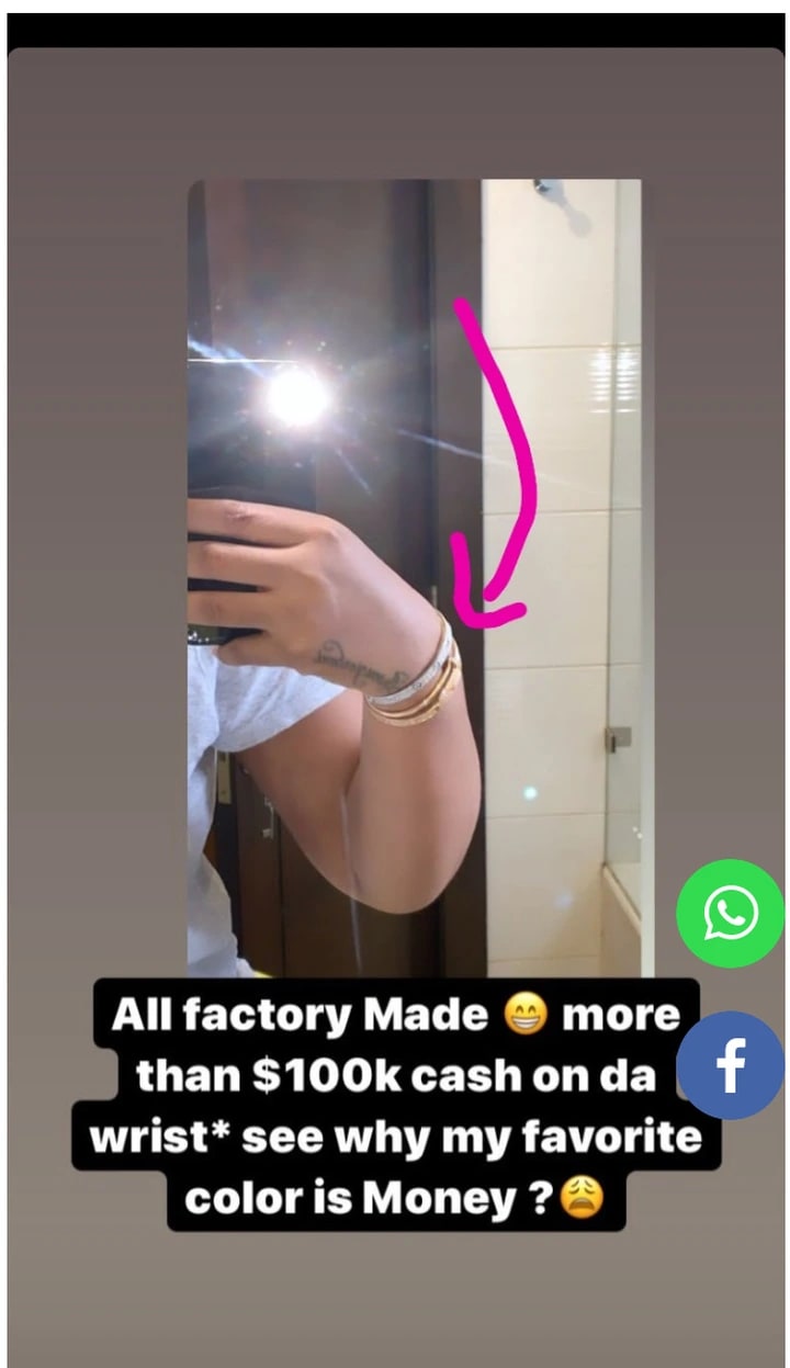 Recently, the model showed off her acquisition of a $100,000 (N38,000,000) bracelet knowing fully well that would cause headlines.