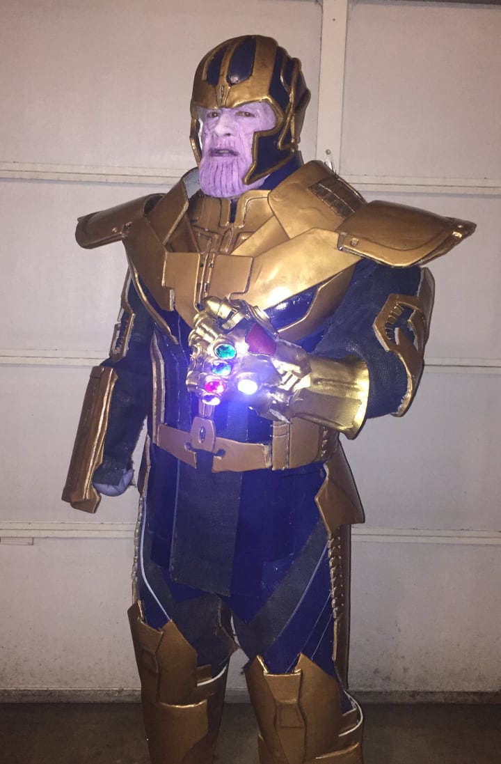 Who doesn’t like to play the villain, especially when his costume is this amazing? Love that giant-jewel-encrusted Infinity Gauntlet and the helmet...not to mention those weird beard-ribs or whatever is going on with Thanos there. Mnamna’s incredible build process is detailed here, on his Facebook page, so you can get a glimpse of all the hard work that went into making this light up and look like he’s ready to destroy the world as we know it.