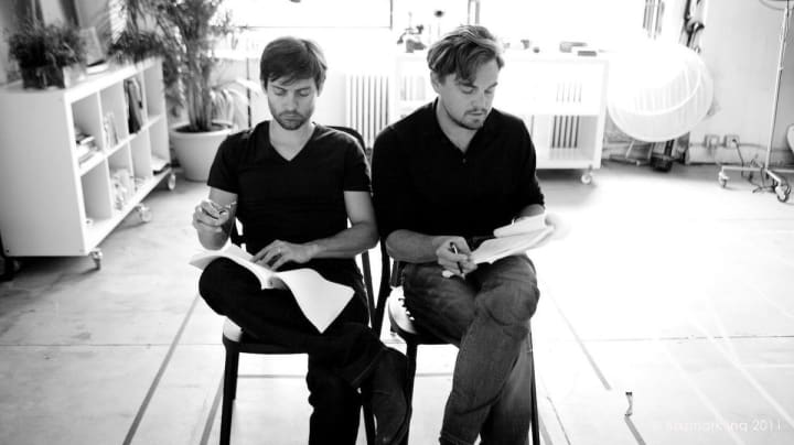 9. Tobey Maguire And Leonardo DiCaprio Reading The Script For 'The Great Gatsby'