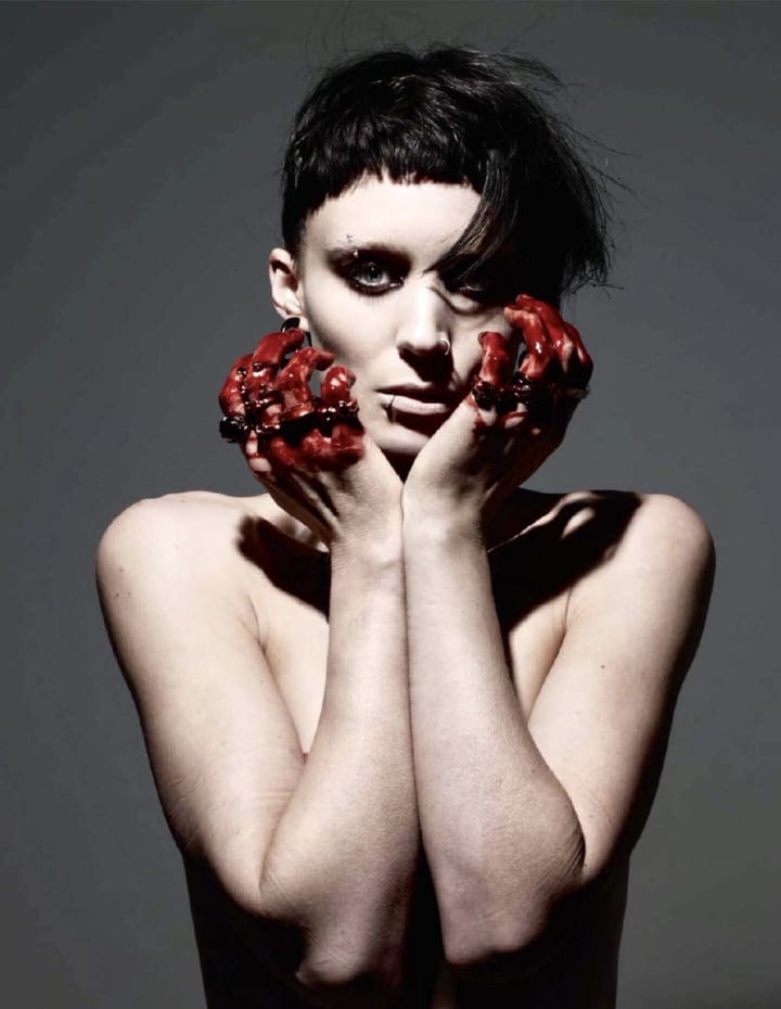 Rooney Mara is ridiculously haunting as Salander in the 2011 David Fincher adaptation of The Girl With The Dragon Tattoo. This image solidified that idea with Mara rocking some bloodied up brass knuckles.
