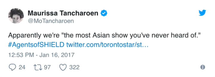 Agents of S.H.I.E.L.D., though, has proven to be a very different experience. One of the producers, Maurissa Tancharoen, is an Asian-American, whose surname is of Thai origin. Meanwhile, Chloe isn't the only major Asian actress in the show; another of the stars is Ming Na-Wen, who plays Agent May.