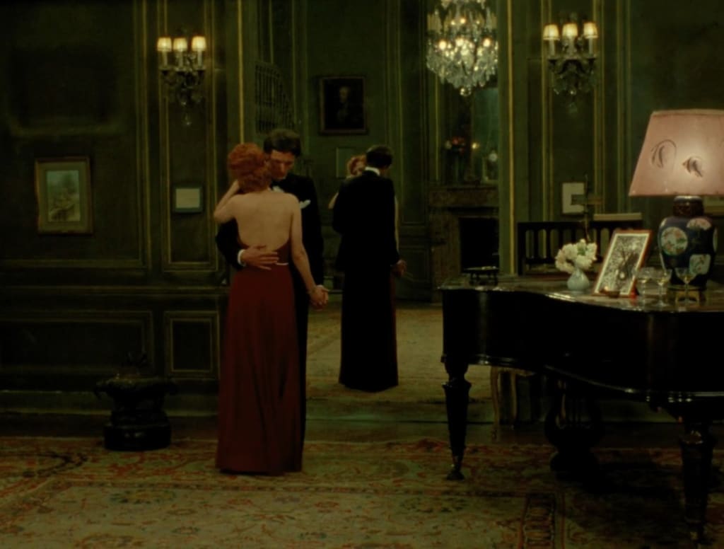 At the heart of the film's mise-en-scene are smoke and mirrors. Clever ideas and pretty things to mask the insubstantialities of the character's lives, the plot, the voices. It is a visual metaphor that all points of the film converge around. A majority of the film takes place in a drawing-room whose space is disjointed by a wall-sized mirror, where incense is constantly burning, and cigarette holding people move in and out via a staircase in one corner and through French windows in another.