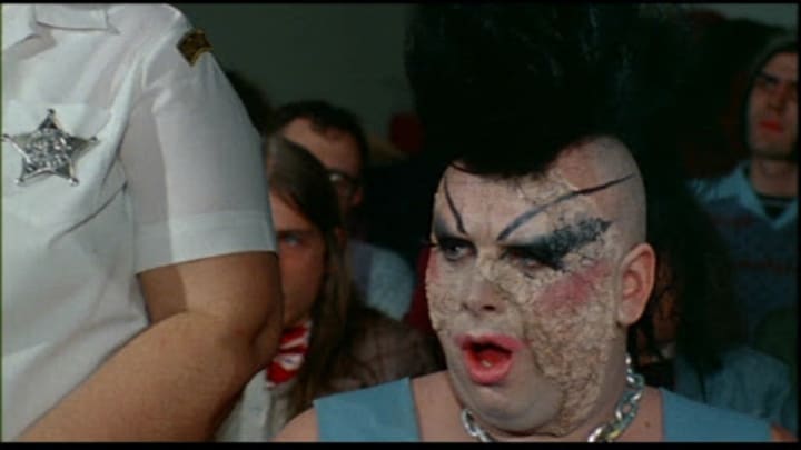 That is sort of a description of the plot of Female Trouble but that doesn’t begin to explain what is going on in this movie. There is a plot and a little bit of structure but, for the most part, Female Trouble a series of shrill, shrieking arguments between Dawn and her family and friends and her enemies, especially her eventual mother in law, Aunt Ida played by Edith Massey as a nightmare come to life.