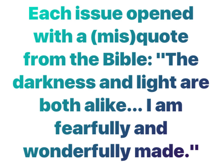 These themes were integral to Bill Mantlo's first Cloak & Dagger miniseries. In fact, each issue opened with a (mis)quote from the Bible: "The darkness and light are both alike... I am fearfully and wonderfully made." Dagger was presented as "living light," Cloak as "shadow," and each made the other whole in a surreal, mystical way. Their lives intertwined with those of Father Delgado and Detective O'Reilly, testing their world-views — and their faith.