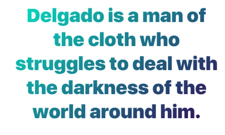 Notice the hint that this character struggles with sexual temptation. In the comics, Father Delgado's greatest struggle was with lust. He became infatuated with Dagger, and wound up institutionalized.