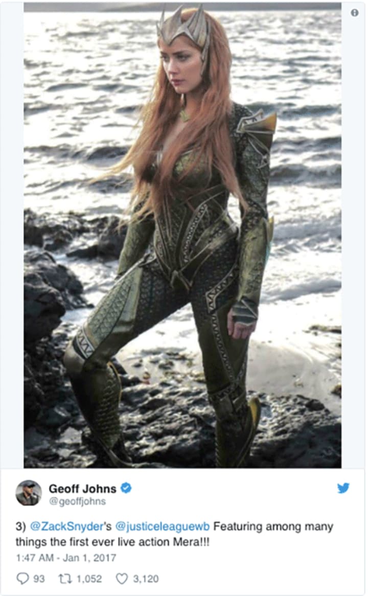 In this case, though, Johns focuses in on the live-action Mera, played by Amber Heard. This isn't the first time he's expressed real excitement about this secondary character, and it's pretty clear that for Johns this world-building is a highlight of the film.