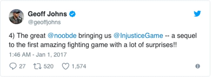 We're already seeing hints of just what to expect from Injustice 2, and Geoff Johns's tweet is a reminder: the best DC games may be yet to come!
