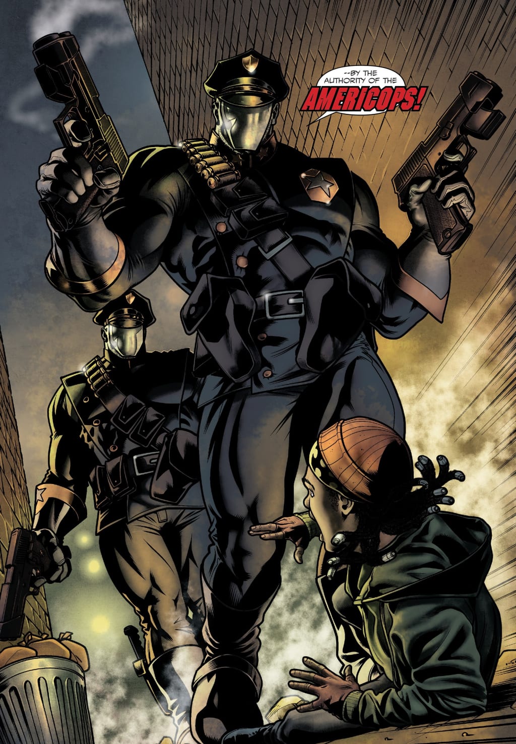 Eventually they were able to get on the same page and take the fight to the Americops and US Patriot as well (another ex-Avenger) before Rage was apprehended by the Americans after trying to stop a local robbery. This is where the series takes a dark turn. Rather than allowing Sam to use his connections to get him free, Rage refused, offering himself as a martyr for the world to see that a broken system was not going to let up for a Black man, even if he used to be an Avenger. Rage was tried and found guilty of robbery, assaulting officers, and resisting arrest. And while it couldn’t get any worse, Rage was later jumped in prison and left in a coma for the remainder of the series.