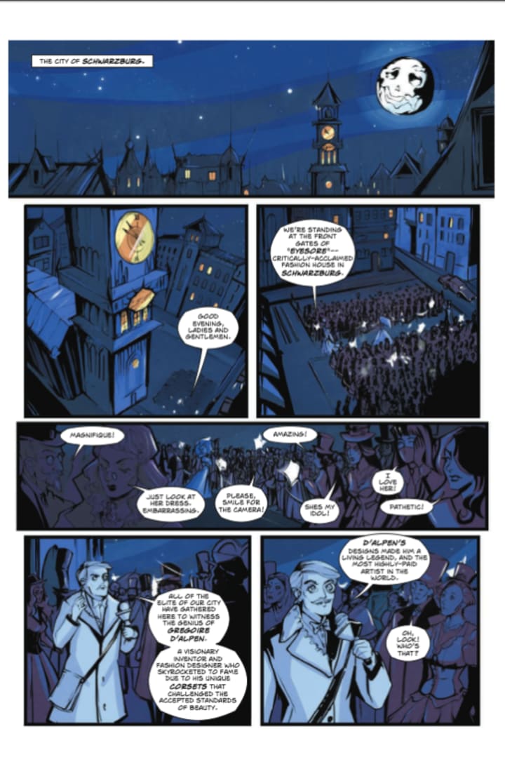 Master Gregoire d'Alpen is a world-famous fashion designer and inventor. His groundbreaking corsets fascinate and inspire millions of people around the world. It's been years since he showed his face in public, living in seclusion in his mysterious clock tower high above the gothic city. One night, a young and naive girl named Elize ruins the master's grand fashion show. D'Alpen invites her to his tower, where he plans to reveal his dark secrets to her-but first, she must give him something in return.