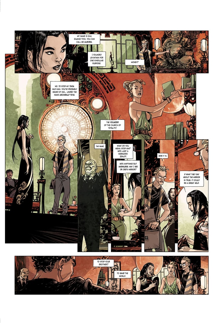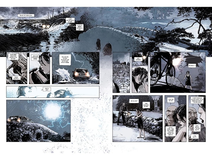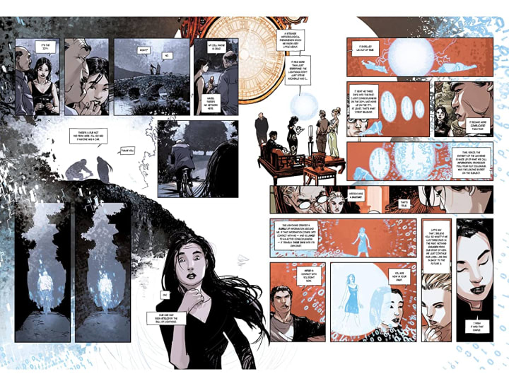 The interiors here are absolutely glorious to see. How the linework with its varying weights and techniques is utilised to create this level of quality in the detail work that we see makes me so incredibly happy. That backgrounds are utilised as they are throughout to enhance the moments while bringing us this amazing depth perception, sense of scale and that overall sense of size and scope to the book is marvellous. The utilisation of the page layouts and how we see the angles and perspective in the panels shows a masterful eye for storytelling. The colour work that we see is divine! How the various hues and tones within the colours are being utilised to create the shading, highlights and shadow work is rather quite stunning.