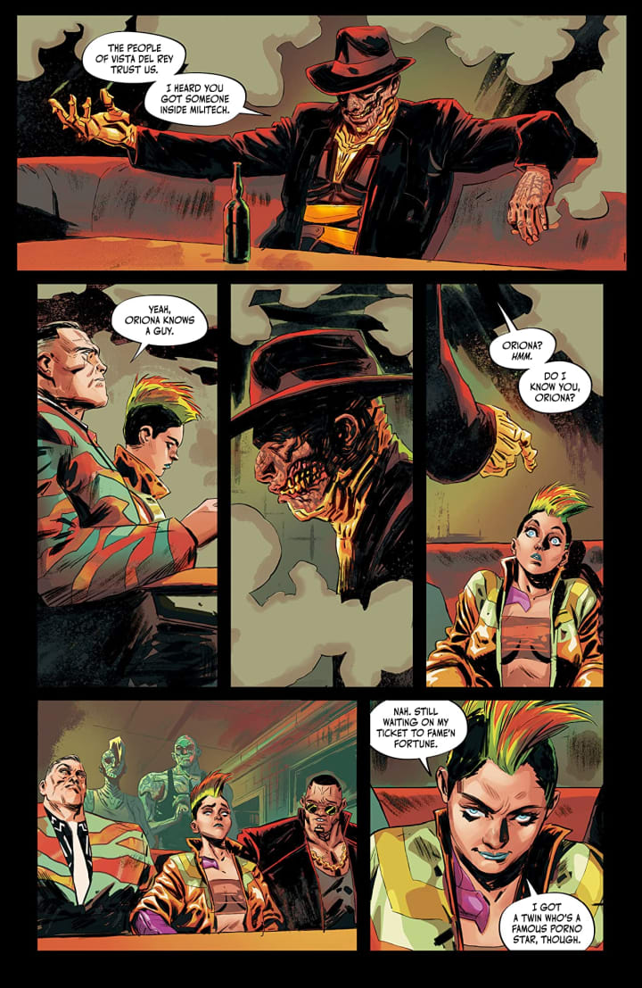 I like how we see this being structured and how the layers within the story are being presented. With Oriona & her boys meeting El Sombreron, the family at the diner and how things become interconnected and yet remain separate is utterly fascinating to me. Then to see how everything works together to create the story’s ebb & flow as well as how it moves the story forward is really rather quite well done. There’s this very interesting way to seeing how it all connects that is unexpected and yet highlights just how strong Bartosz’s talent and skill are.