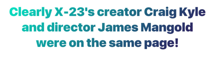 X-23 gave him plenty of material to work with. She was introduced as a thirteen-year-old clone who'd been brought up as an assassin; the original design was changed a lot when she was made her way into the comics, but it was against the wishes of her creator, Craig Kyle. He fumed that the comic-book version "was 22 and had a boob job." Clearly Kyle and Mangold were on the same page!