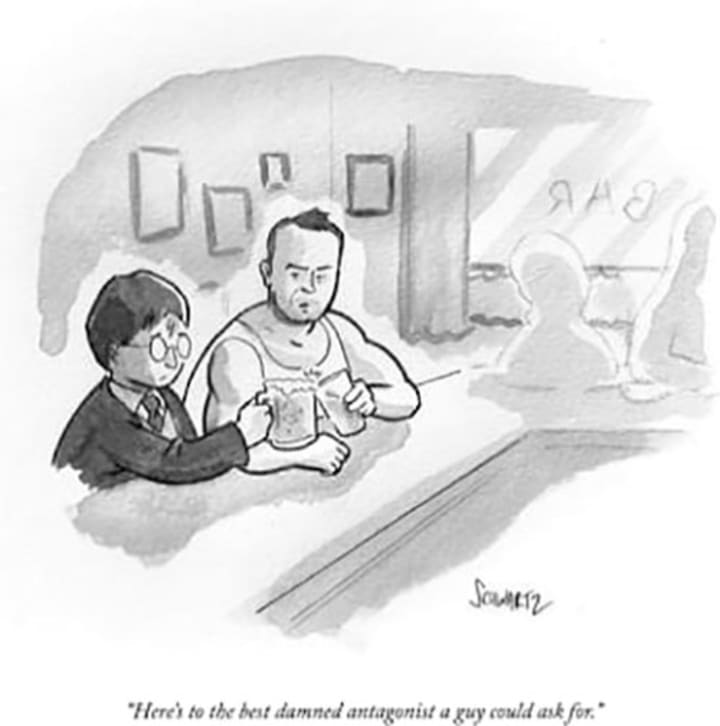 He finished with a final image, a cartoon from The New Yorker with two of Alan's most famous on screen adversaries.