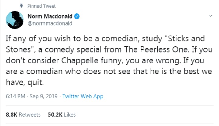 Part of the whole shtick here by Dave Chappelle seemed to be to create a special that was purposely in your face, anti-PC, anti-woke, and offensive. And, he is being celebrated for that stance by people who are tired of being told what they should and shouldn't laugh at. I'm looking at YOU, Vice and your article, "You Can Definitely Skip Dave Chappelle's New Netflix Special 'Sticks & Stones'." The thing is, Dave Chappelle is just doing what Dave Chappelle has always done. Nothing here has really changed other than society. Those that found him funny before probably still find him funny. Those that don't know him and aren't really open to comedy about sensitive topics probably won't.