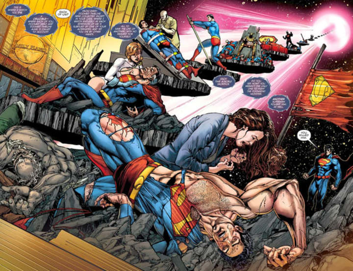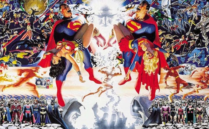 Over in the comics, DC has a habit of using multiversal plots to straighten out their continuity, at times even merging realities at a whim. The most famous was Crisis on Infinite Earths, in which the villainous Anti-Monitor threatened the entire Multiverse. DC revisited the idea as recently as last year's Convergence miniseries, which united the superheroes of different realities against Brainiac.