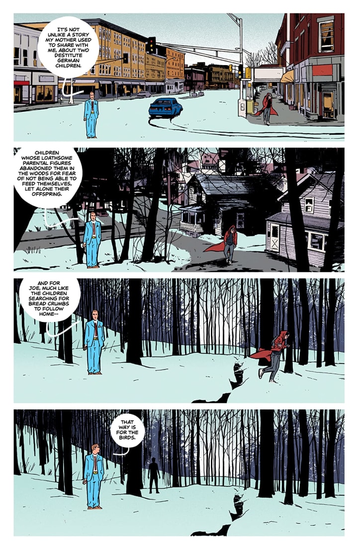This is the kind of town I kind of want to live in where if you're intrepid enough you can know all the dirty little secrets everyone has with a little bit of determination and knowhow. Also I have to say that Joe and Chief while they won’t admit it do have some admiration for the other and if Joe keeps this up she’ll either be arrested or the two will be in cahoots soon enough. This is my supposition but with the facts at hand I'll stand by this. This is a very intelligently written story with dark humour and dark motives, warnings and detective work that fits in-between these absolute perfect interior artwork pages.