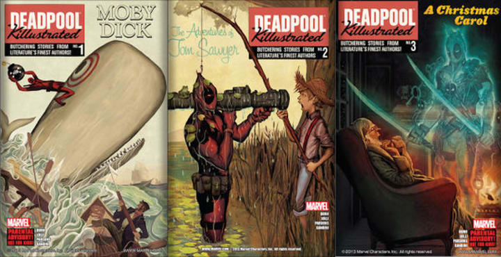 It's fairly common knowledge that Deadpool went completely bonkers and started slaughtering the entirety of the Marvel Universe. Then he has an epiphany and realizes that the characters in Marvel comics are trapped in an endless cycle of death and resurrection because they all draw inspiration or are based on characters in literary fiction. His solution is to literally kill everyone and end the cycle. So he travels through the Nexus of All Realities and begins murdering classic characters like Don Quixote, Moby Dick, Tom Sawyer, The Little Women, Captain Ahab, Count Dracula, the Headless Horseman, Dorian Gray, and many others.