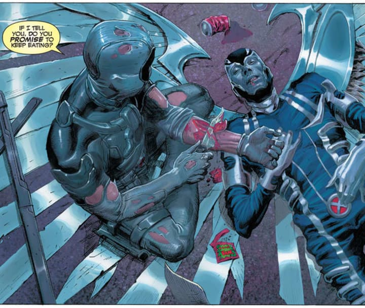 Often times Deadpool's deeds are overlooked, considering he is a truly complex character. His heroic status is often underplayed as his heroic deeds are few and far between, but he has shown himself to be selfless at times. One particular story arc that cements his status as a hero is when he encounters Archangel on the brink of death. In the only way he can think of, Deadpool nurses him back to health by carving chunks of his own flesh off and feeding them to Archangel. I know, truly inspiring.