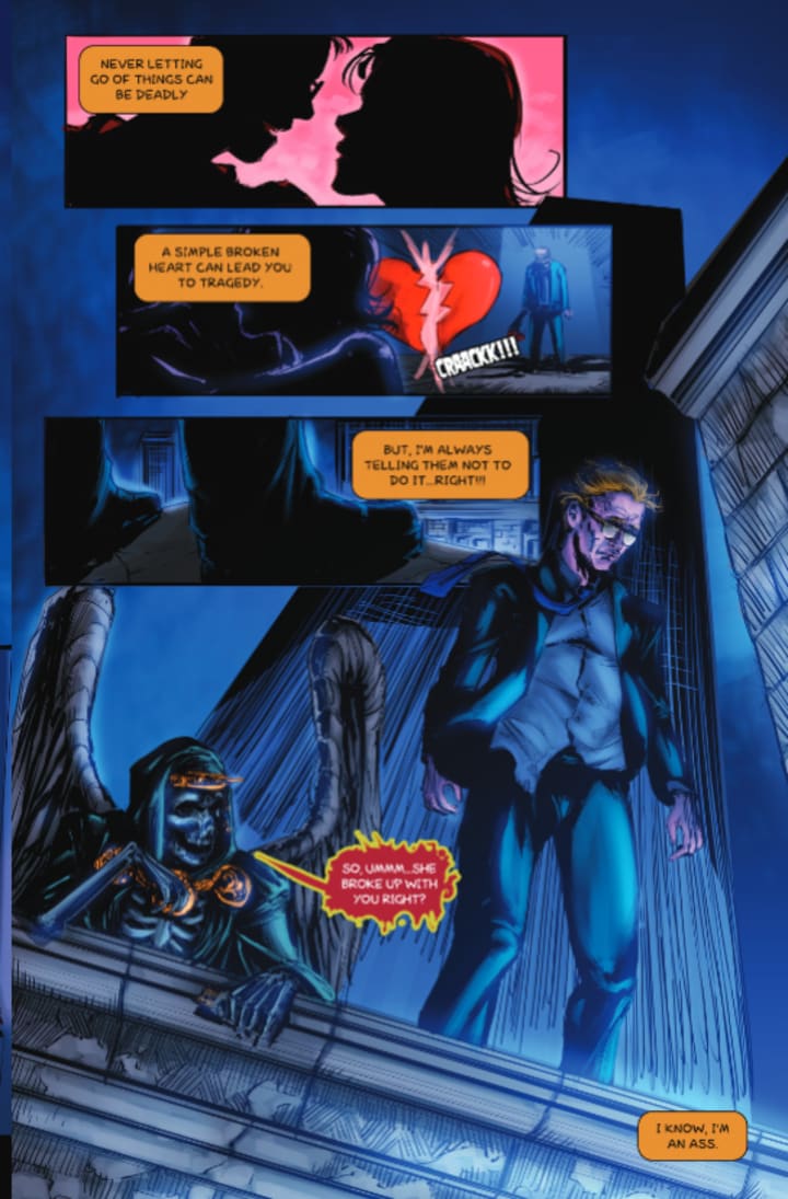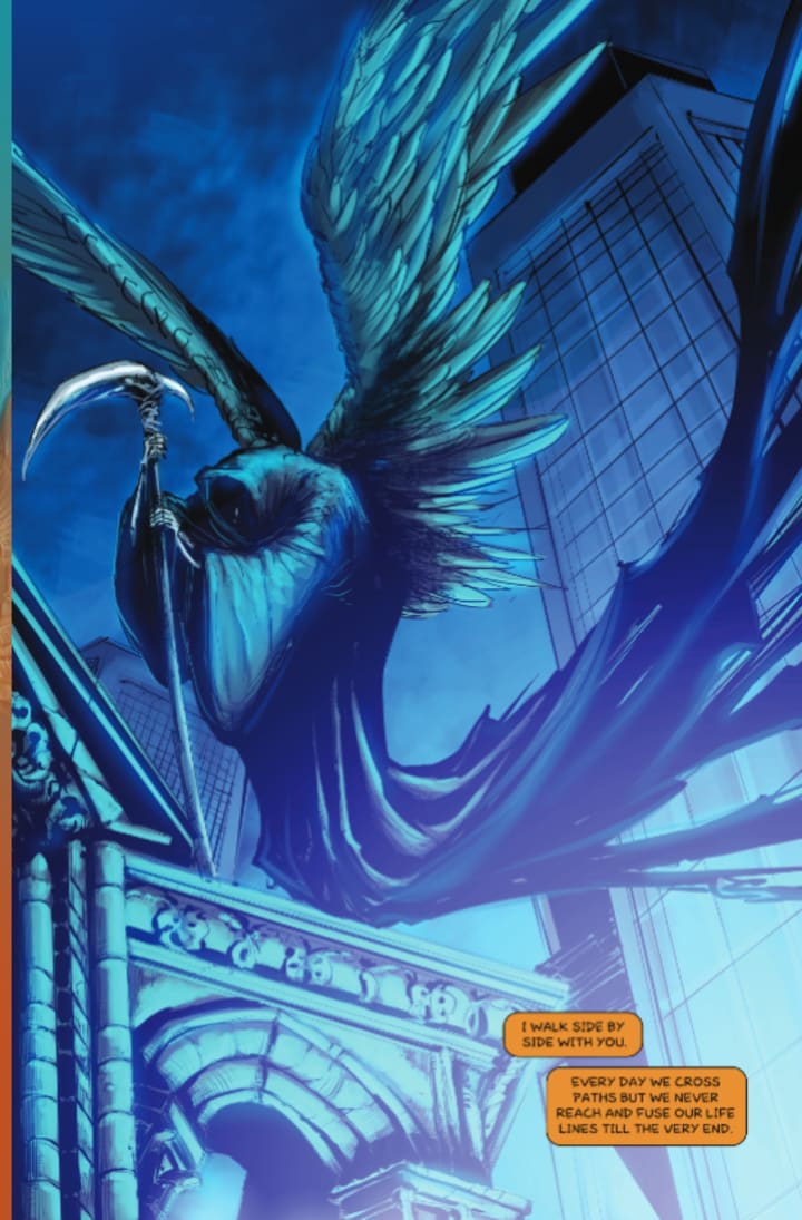 The long Angelic Wars are over, but Death has been allowed to keep his powers to do his job, though under the watchful eye of the archangel Miridia. However, with empathy and other moral values at an all-time low, Death finds himself actually bored and fed up with his work. Then an event occurs that causes Death to feel something new to him: the touch of the living. The ramifications could shake the very foundations of existence!