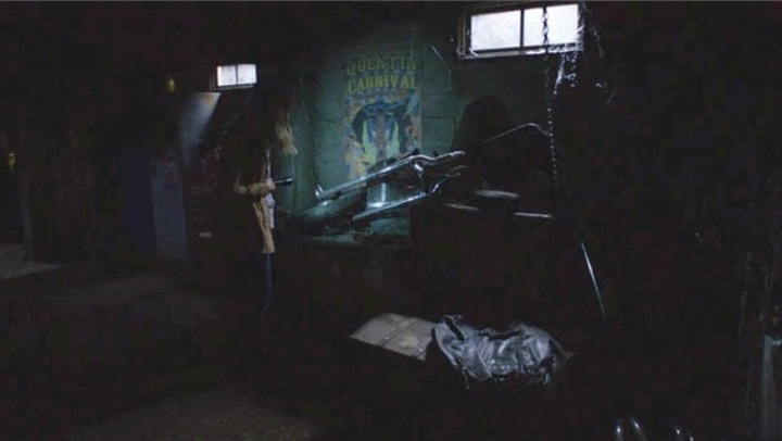 Lucy Bauer and her ghost comrades made another appearance, as their quest for the Darkhold reached a head. After learning that her husband, Jeffrey Bauer, stashed the Darkhold in the basement of his old home, Lucy was on her way to find the book. Upon arriving, Lucy's walk through the basement subtly displays a poster for the "Quentin Carnival" on one of the stone pillars in the basement.