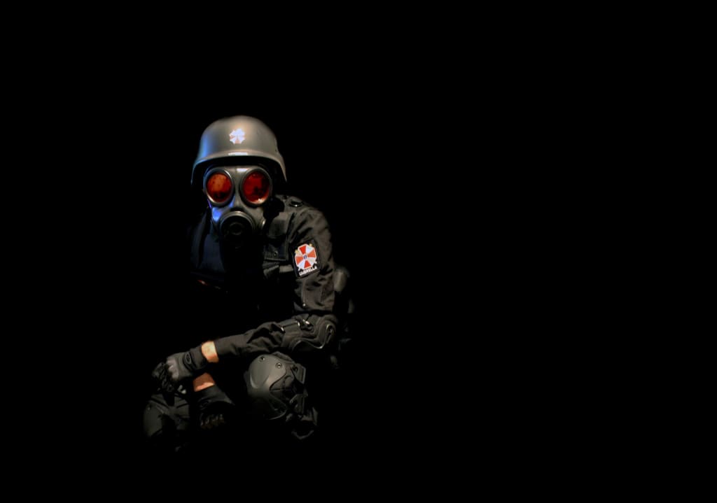 There was a strange yet somehow familiar symbol with alternating red and white inverted triangles on the driver side door and the hood. It looked a bit like the symbol for radiation but different somehow. I knew that symbol, I had seen it before, my mind reeled trying to recall where. Then I noticed the words just below it, ‘Umbrella Corporation’ . Suddenly I had it, Resident Evil, of course. I continued to stare and began to notice more strangeness about the truck, it was newish but painted all black, attached to the back was a small trailer filled with wood, firewood I imagined as it was chopped into smallish pieces and stacked exactly as fire wood would be. The longer I looked, the more it seemed to be a military style vehicle, but the kind used mainly for civilian activities. It looked like something straight out of a video game.