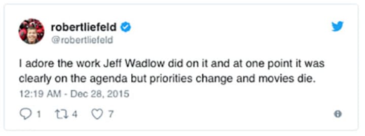 Rob Liefeld returned with a couple comments today that have led fans to believe that the film is officially off the slate at 20th Century Fox. Here's what he had to say on Twitter: