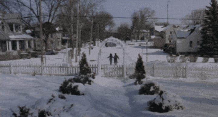 Sure, we see Phil do a lot of good with his time (eventually), including buy a young Michael Shannon a Wrestlemania ticket, help out some old biddies, and use the Heimlich manoeuvre to stop someone from choking, but is it too little too late? Just like Murray's character from Scrooged, Phil Connors is actually a bit of a sh*t. Self-centered, boozing, and rude, his time in Punxsutawney represents his time in limbo, deciding if he will go to heaven or hell — if Ryerson represents the Devil, that Andie MacDowell's Rita is his angel. Ultimately it is Rita who Phil tries to impress, and it is she who reforms his character. Unable to be swayed to "the dark side" by Ned, Phil gets his happy ending with Rita as they walk off into a snow-covered lane. Notice the fade to a clear blue sky for the final shot — this is the film's version of heaven.