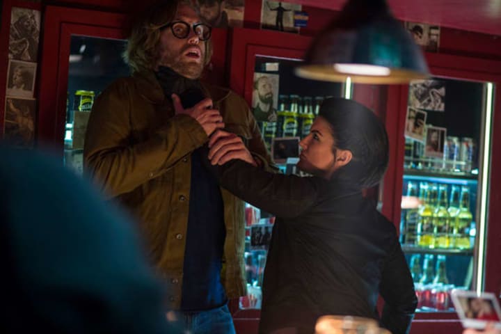 Weasel is threatened by Angel Dust (Gina Carano)