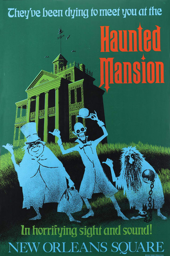 At Disneyland, one of the most popular rides there is is The Haunted Mansion. With 999 friendly ghosts ready to hitch a ride in your buggy. Fans young and old have enjoyed this classic ride for decades. Now you can own a poster featuring the Hitchhiking Ghosts!
