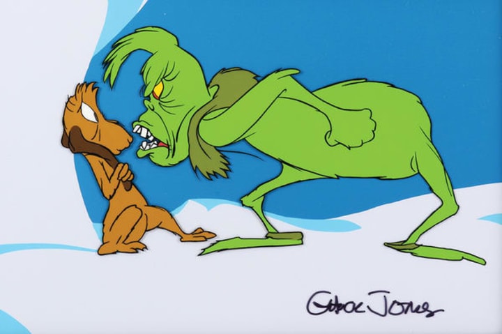 An original signed drawing from artist Chuck Jones of the Grinch and Max atop Mount Crumpit from the classic How the Grinch Stole Christmas. This green Grinch would be perfect the perfect gift for the Dr. Seuss fan in your life.