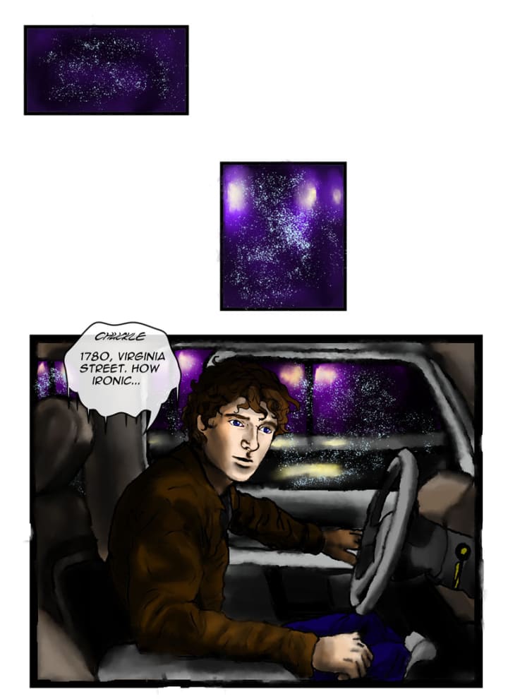He walked into the cold night with a full moon shining brightly over him. Snow lightly covered his jacket as he walked to his car. It was a nice black truck with an extended and enclosed cab. There were also spinners on the wheels, not that he cared for them, but it made his car easier to find.