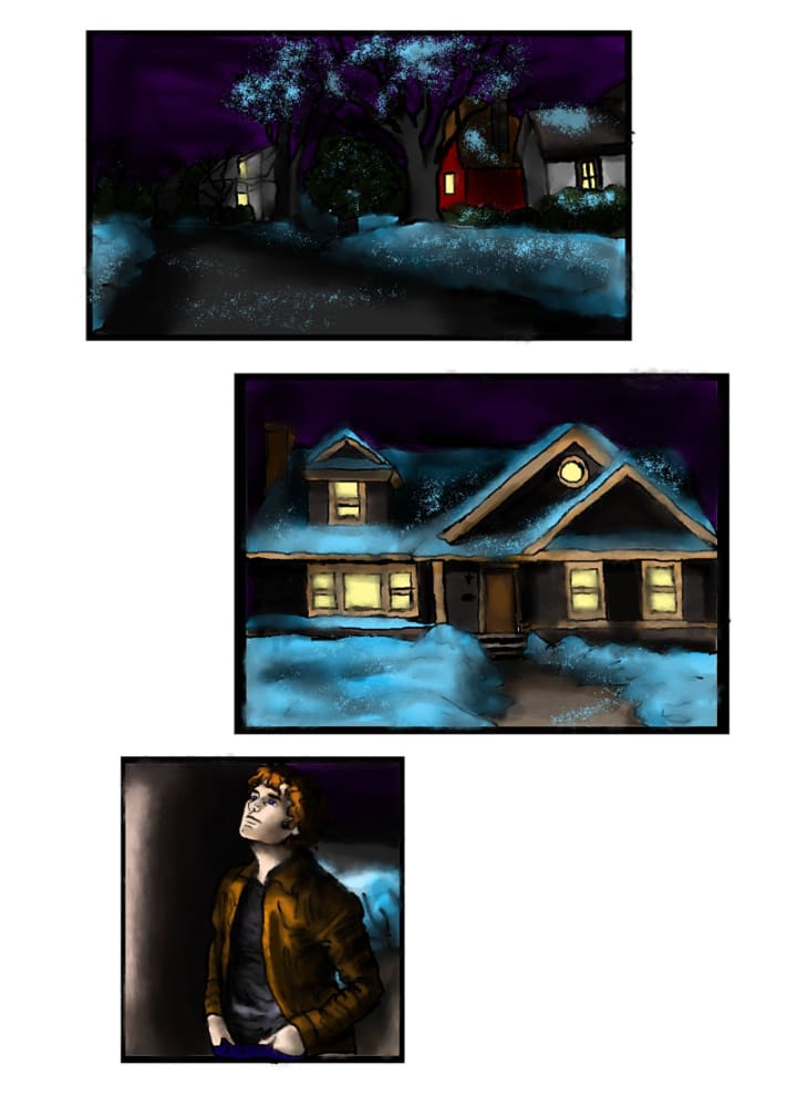 He slowly pulled into her driveway and turned the key. Her house was a nice comfortable looking, blue Victorian house with a yellow door. Christmas lights still hung on the front porch and lights shown through the first floor windows. There was a swing chair on the front porch next to some pots meant for flowers. The lawn was covered with a foot of snow and the driveway was freshly shoveled.