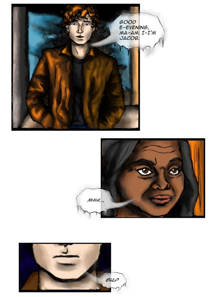 “Good e-evening, ma’am, I-I’m Jacob.” The young man cringed at his faltering voice.