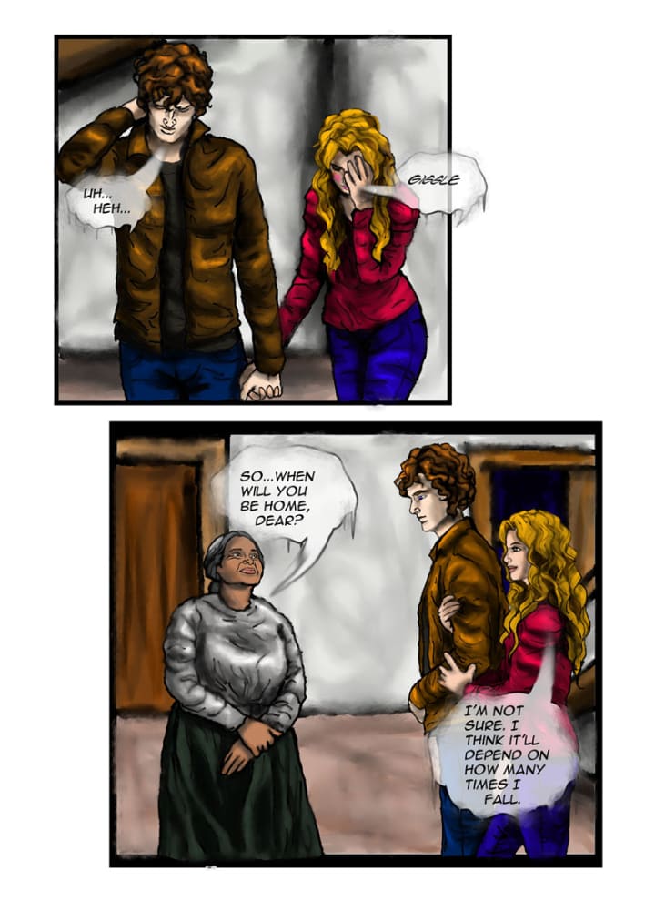 “Don’t worry, I’ll be there to catch you.” Jacob replied. Rebecca blushed and Penny chuckled.