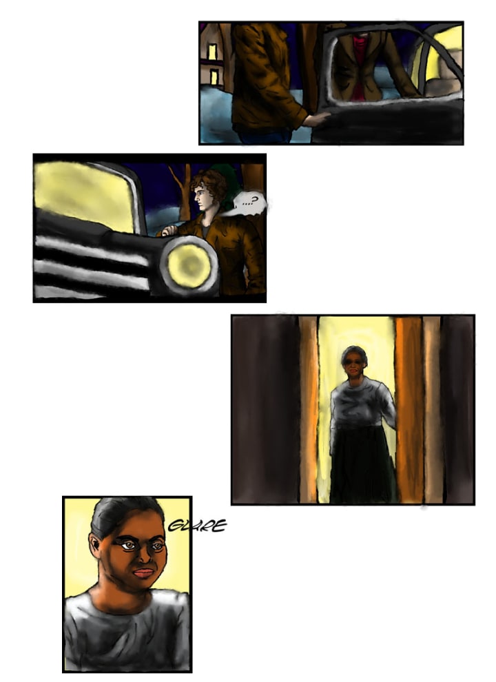 “Mmm...” the woman muttered, raising an eyebrow. Jacob gulped.