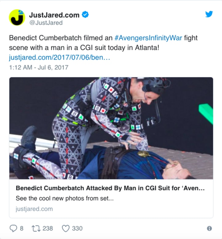 Production is ongoing for Avengers: Infinity War, and thanks to a couple batches of set photos from Just Jared, we're getting a taste of what's to come in the anticipated cosmic adventure — particularly for Doctor Strange. Potential spoilers follow.
