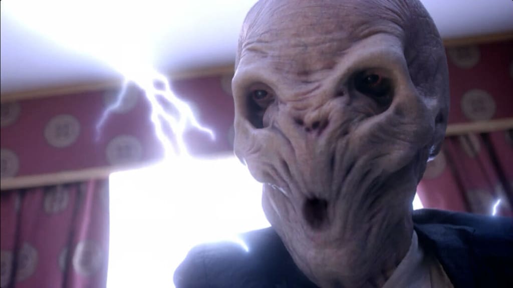 The Series one two-parter 'The Empty Child/'The Doctor Dances', introduces what is still remembered as one of NuWho's creepiest monsters. During WWII, alien nanites arrive on Earth, and begin ‘repairing’ any damaged humans they find. Their first patient is a young boy wearing a gas mask who was killed during an air raid. Unfortunately, since the Nanites had no previous reference for human appearance, they believe the gas mask is a part of the boy, and revive him with it fused to his face.