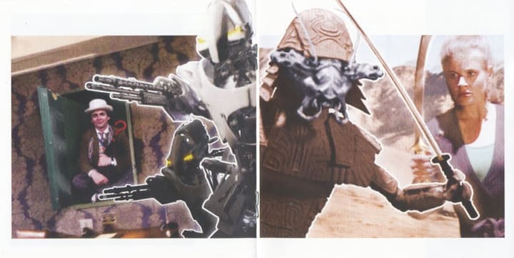 Like I mentioned above, the plot for this story is utterly mad, and I would have been interested to see how it would have been realised on screen. In London, safecracker and cat-burglar Raine Creevy breaks into a safe that just happens to contain a strange little man with a question-mark umbrella. In Scotland, an off-the-books facility contains a device not of this world. And in a war-torn Middle Eastern region, a warring prince and an embittered Soviet colonel find themselves besieged by alien warriors known as the Metatraxi... As you can see from the above, "Crime of the Century" is all over the place. It jumps from set piece to set piece, and isn't afraid to go faster than the audience can keep up. This does mean, however, that it is very light on plot, and, as such, any sense of logic is pretty much thrown out of the window. The audience does need to pay attention to this one, because it is very easy to get lost, and perhaps making some concessions to the audience might have avoided making this one seem quite so impenetrable. A lot of the ideas do end up feeling rather disconnected, and I'm not entirely convinced writer Andrew Cartmel has been able to produce a completely coherent plot that flows from A to B. Instead, we jump around different locals like a posh garden party, the east end of London, the war-torn region of Kafiristan and finally a secret facility on the Scottish borders, and, as a result, it ends up feeling more like a double-length episode of The Avengers rather than Doctor Who. This even comes down to new companion Raine. Clearly inspired by Diana Rigg's Emma Peel, Raine is someone who can handle herself in a number of situations: flying helicopters, fighting robots and especially opening safes. While in a similar vein to Ace, she is someone who is rather different, and her relationship with the Doctor is different as a result. Like Benny, her and the Doctor are more like intellectual equals, and, despite their standoffish introduction, they make for a fantastic team. It's a shame she only encounters Ace in the dying moments of the final episode, as there is the possibility for some potentially interesting directions between the two, considering the vast differences between them. Of course, Ace was never meant to be in the original version of this story, and her subplot about being sent off to Kafiristan ends up feeling more like it was designed to get her out of the way, rather than in any way to advance the story. At least it shows off a more mature side to Ace, something that they were planning to implement in future stories.