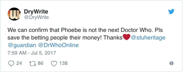 Meanwhile, the group behind Fleabag adamantly denies that Waller-Bridge is the next incarnation of the Doctor. Does this only fuel the fire? Take a look at the tweet.