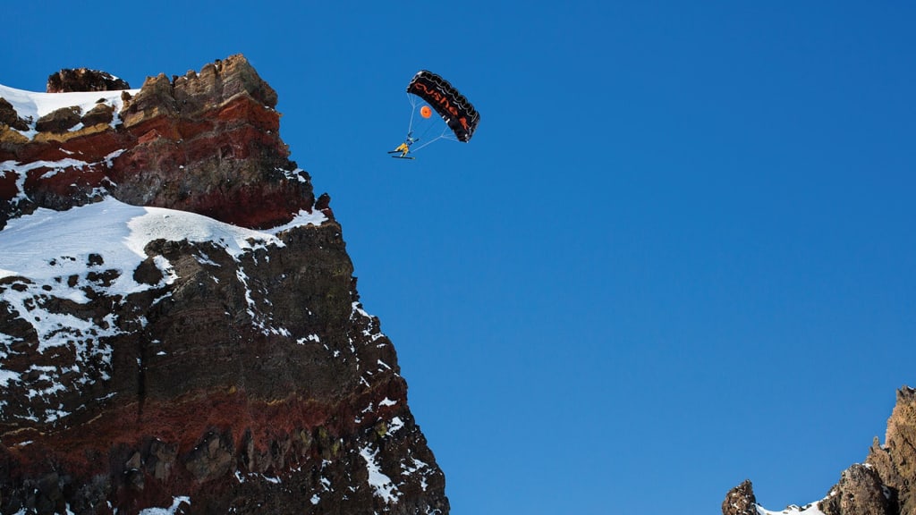 Rather than seeing his friend’s death as a reason to stop jumping, Matthias goes ahead with his jump and dedicates it to his friend. The almost matter of fact approach to life and death is so much a part of freestyle skiing and base jumping that Matthias’ reaction to Shane’s death doesn’t come off as callous or inhuman but strangely wistful and inspiring. Matthias is inspired by his friend to keep going and keep jumping and while that might seem strange to those who aren’t in this daredevil field, Giraud makes this feel natural, just another part of what he does.