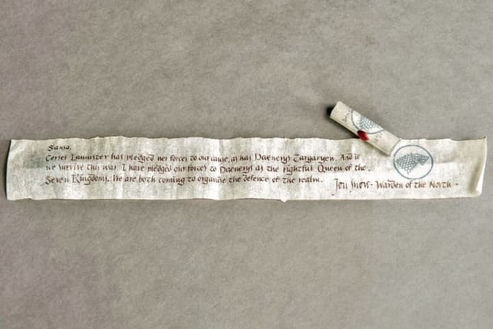 With Jon Snow recently revealed to be a cousin to the remaining Stark children rather than their bastard brother, Sansa will soon have a lot to think about when it comes to her role in ruling the North. Sansa and Jon care for and have a deep respect for each other, but that could easily change after reading the letter Jon sent in "The Dragon and the Wolf". Although we never actually saw the scroll, HBO has released images of the prop used on screen.