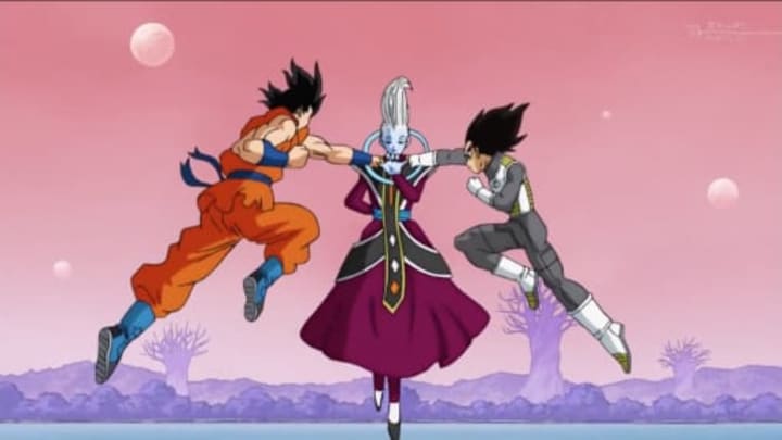 Whis trains Goku and Vegeta, Dragon Ball Super.