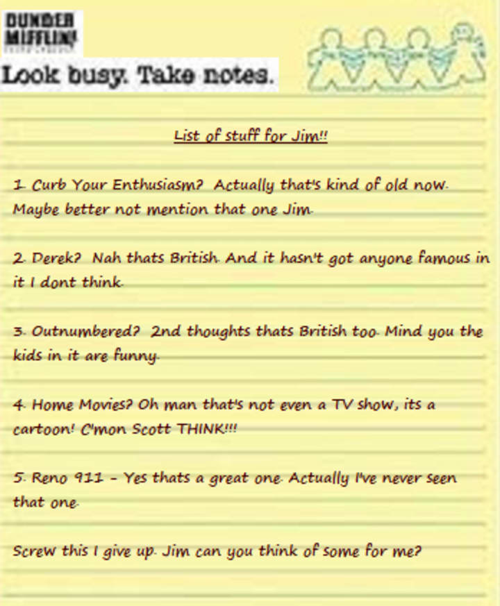 I also have my ‘Improv’ class at lunchtime so I need you to do this for me Pam. I’m ordering you to do this for me. It’s a direct order.