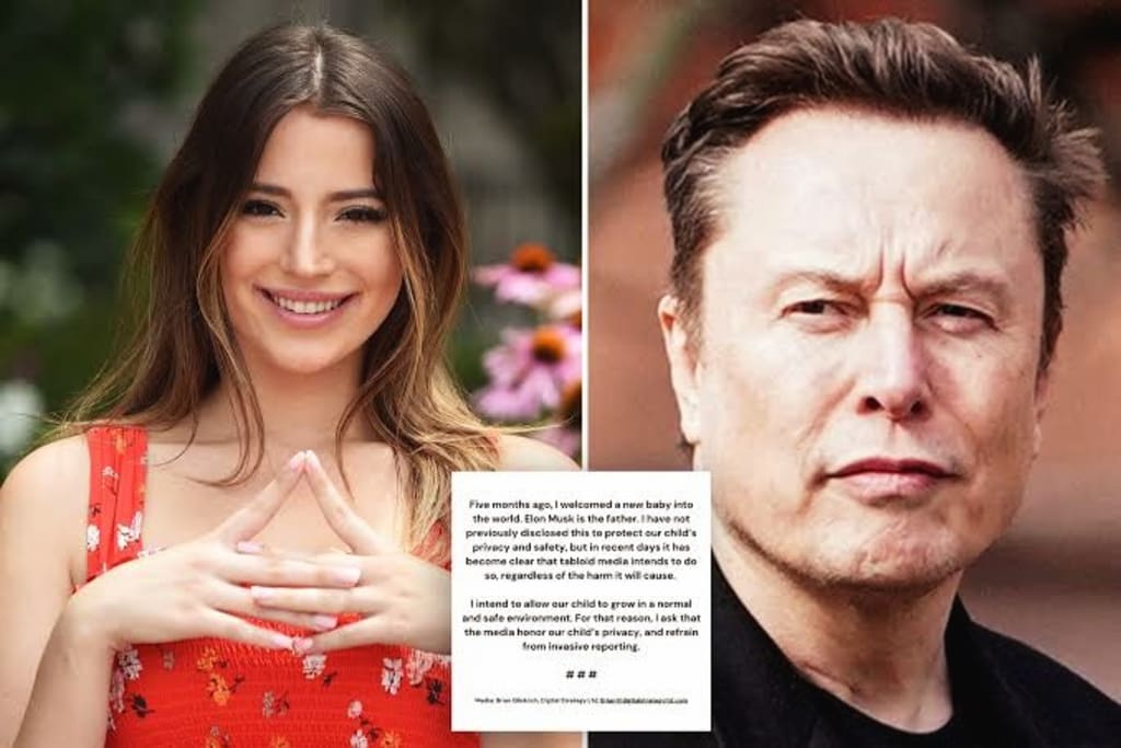 "Five months ago, I gave birth to a new baby. Elon Musk is the father."