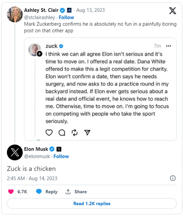 Elon Musk's "Chicken" Jab After Mark Zuckerberg Calls Off Cage Fight